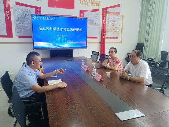 9月17日上午,渝北区科协副主席黄孝礼、科普宣传部部长郑溪璐一行来到重庆工业职业技术大学,亲切慰问我校优秀科技工作者代表李应教授。科研处及化学与制药工程学院相关人员陪同座谈。