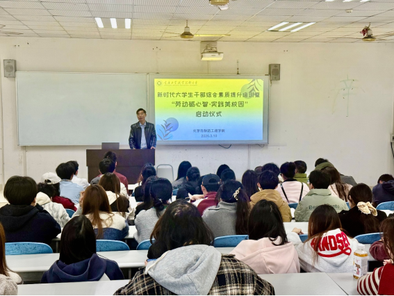 2026年3月10日中午12:30,化学与制药工程学院党总支副书记麻红晓在两江校区三教324教室组织召开了新时代大学生干部综合素质提升培训暨“劳动砺心智,实践美校园”启动仪式。学院大二全体学生干部齐聚一堂,共同参与本次会议,旨在树立和践行正确政绩观,加强学生干部队伍建设,推动劳动教育实践落地生根。会议议程包括学生干部代表分享、书记工作培训以及劳动教育活动动员三个环节,内容充实,氛围热烈。