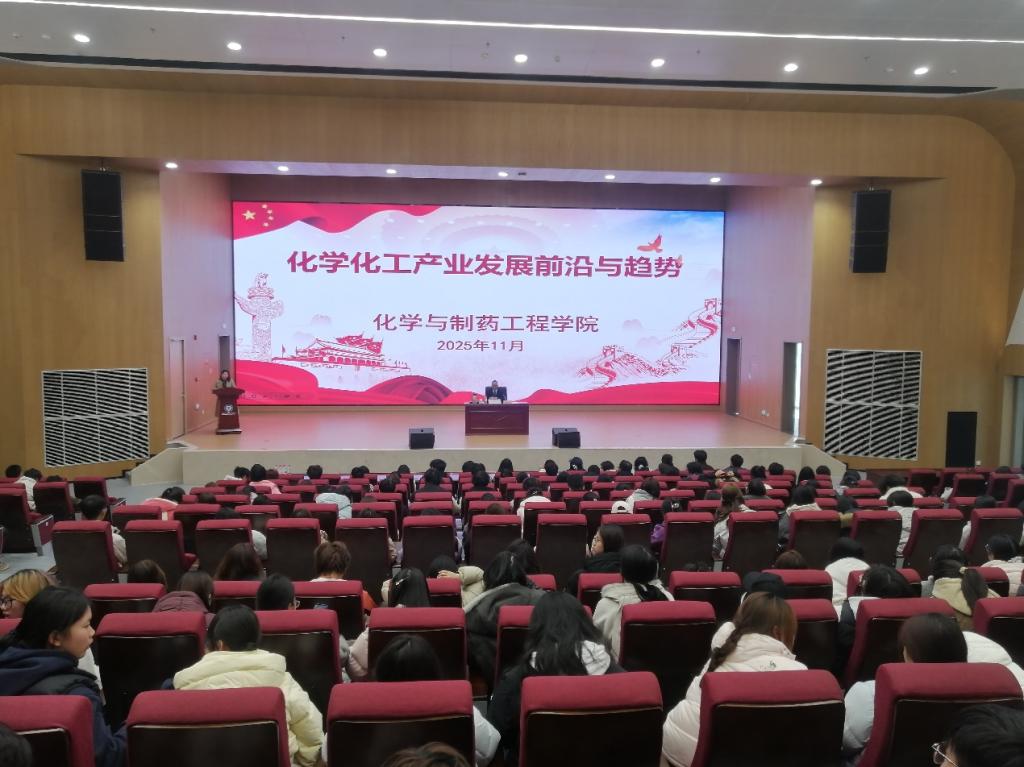 中西部基础化工行业产教融合共同体、化工循环经济产教融合实践中心、重庆市化学化工学会主办的“化学化工产业发展前沿与趋势”系列讲座,11月28日下午在我校南川校区第一学术报告厅举行。学校校企合作单位、重庆天原化工有限公司一级专务何卓先生应邀作题为《自力更生自强不息砥砺深耕向未来》的报告,375名新生全员参加,现场座无虚席。讲座由学院发展与合作中心主任段益琴主持。