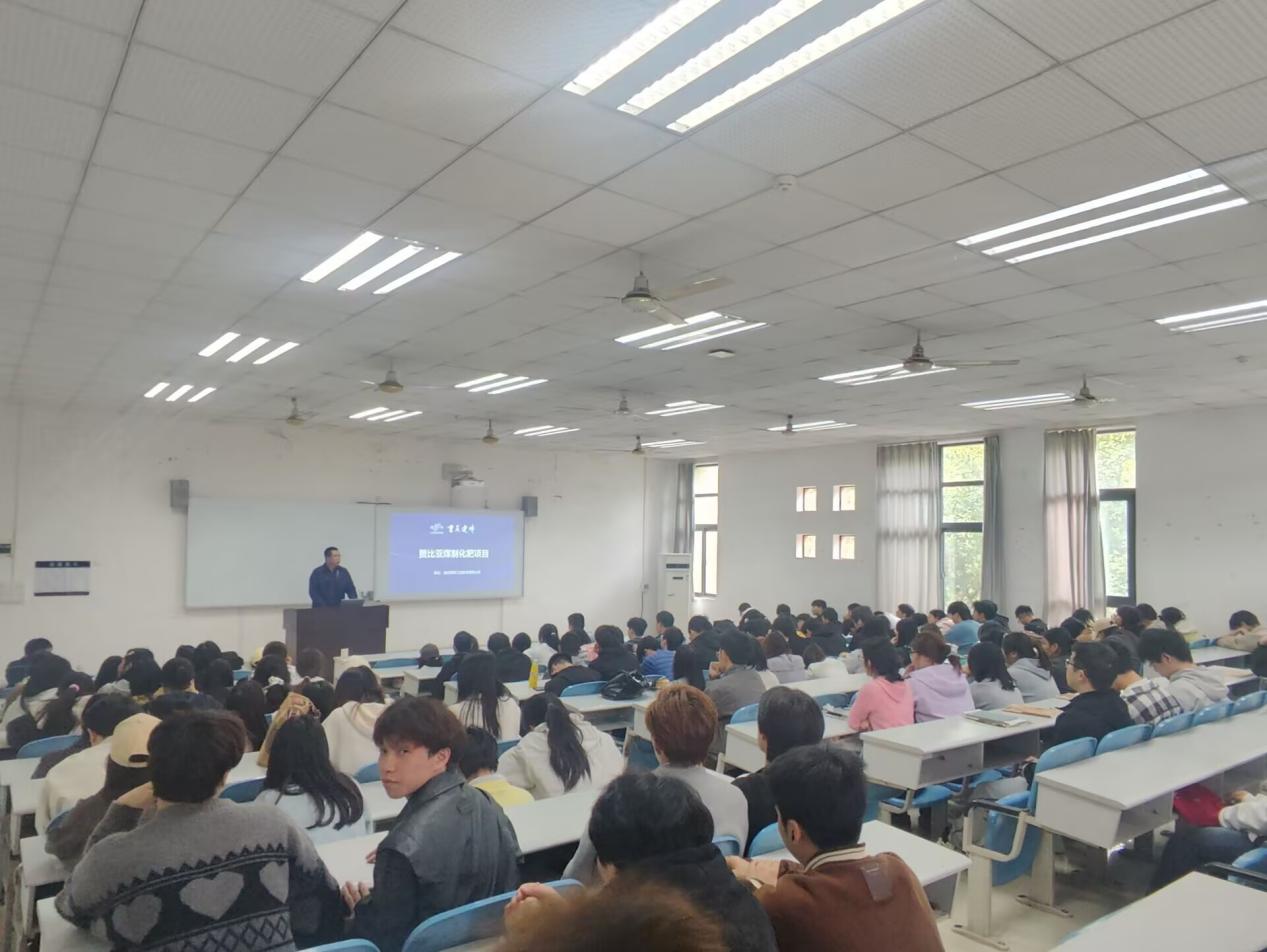 宣讲会现场座无虚席,气氛热烈。企业人事经理罗澜首先向学生详细介绍了公司的发展历程、业务布局、企业文化及人才发展战略,重点阐述了建峰国际在行业内的领先优势以及对高素质技术技能人才的迫切需求。随后,项目经理侯云山围绕公司海外重点项目——赞比亚项目展开介绍。他重点讲解了该项目中合成氨尿素装置的建设情况,展示了企业在化工领域的技术优势与国际化布局,充分呈现了企业海外发展的广阔前景。讲解内容紧贴专业实际,激发了同学们对专业对口岗位及海外工作的浓厚兴趣。